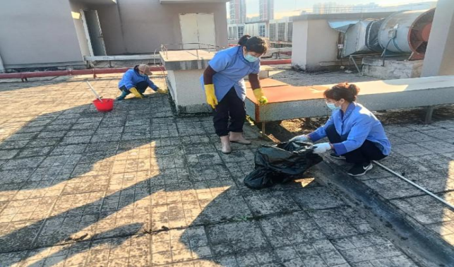 环境学院楼宇天台排水设施清理