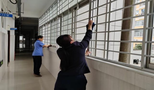 对公共教学楼宇的楼梯、走廊、门把手、课桌椅、电脑键盘、鼠标、水龙头、楼梯扶手、电梯间及按钮等高频接触表面进行重点杀菌消毒601次。