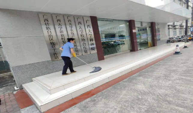 对君武馆、财务处、办公楼、大学生活动中心、保卫处等办公楼宇进行日常卫生保洁等服务工作。