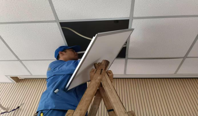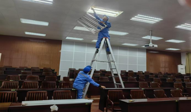 林学院大厅更换照明灯