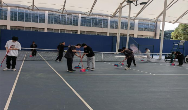 大学生在网球中心开展劳动教育实践课