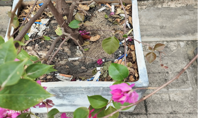 巡查发现花圃里有垃圾
