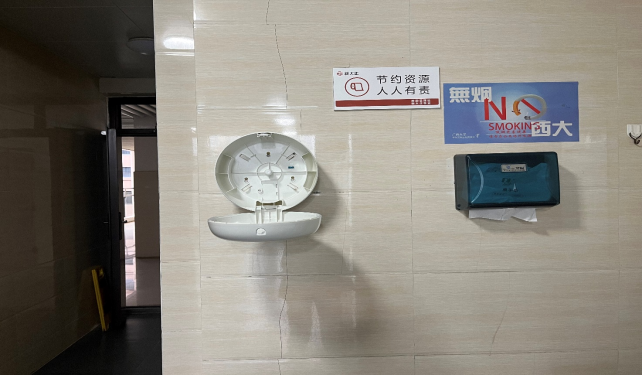 财务处2楼走廊粘贴脱落瓷砖