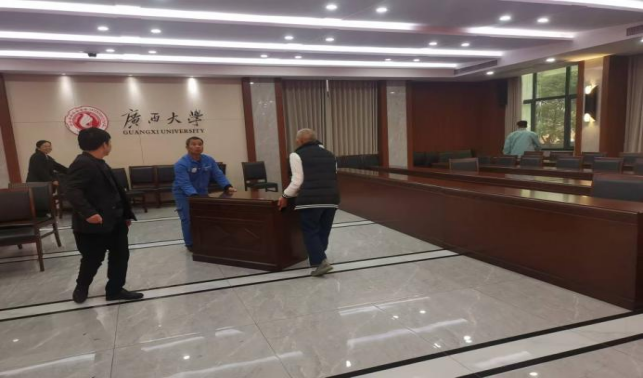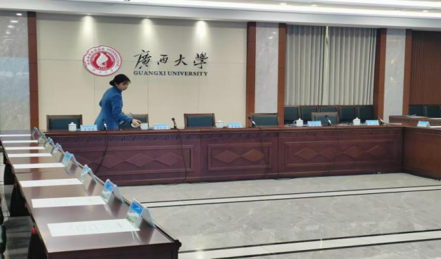 做好会场布置、会议前后保洁及会务各项服务共计39场,其中重要接待23场。