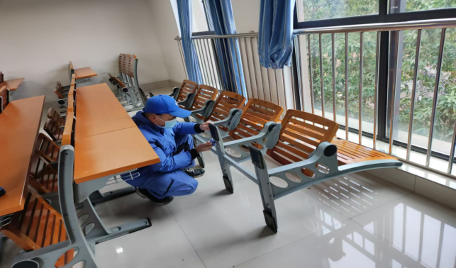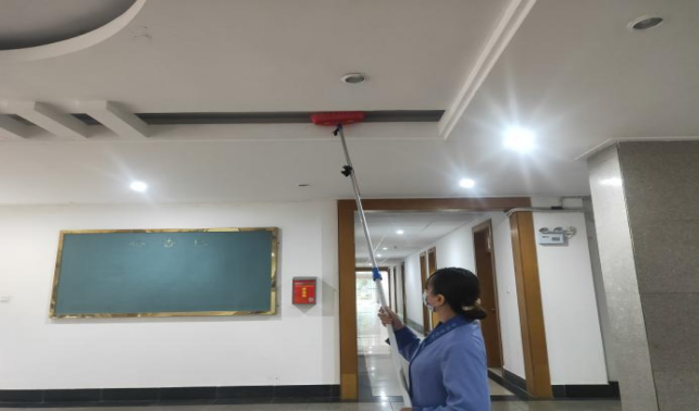 对公共教学楼宇的楼梯、走廊、门把手、课桌椅、电脑键盘、鼠标、水龙头、楼梯扶手、电梯间及按钮等高频接触表面进行重点杀菌消毒597次。