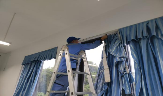 六教308教室挂脱落窗帘