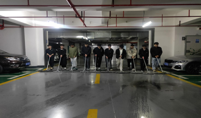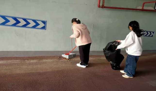 大学生在南大门地下停车场开展劳动教育实践课