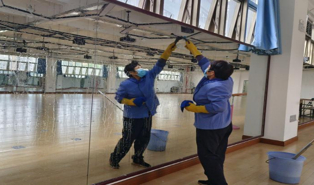 对东校园、西校园和北校园体育场馆进行日常卫生保洁工作。