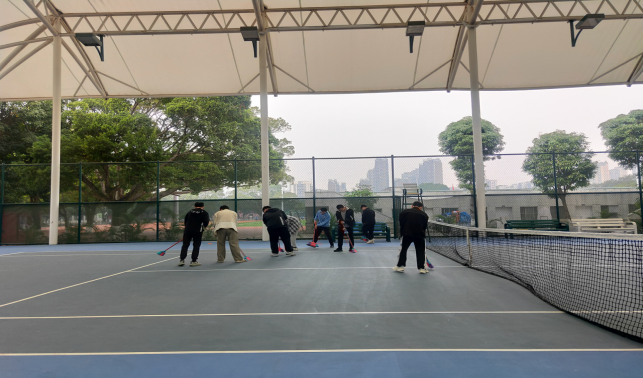 大学生在网球中心开展劳动教育实践课