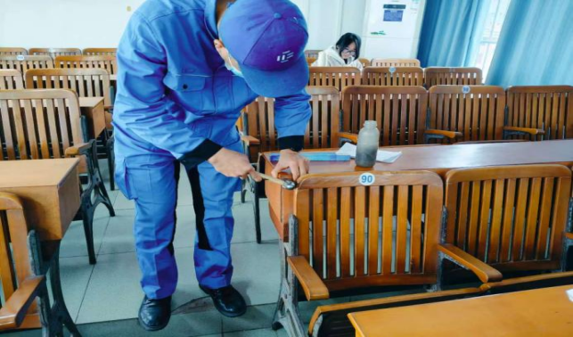 对公共教学楼宇的楼梯、走廊、门把手、课桌椅、电脑键盘、鼠标、水龙头、楼梯扶手、电梯间及按钮等高频接触表面进行重点杀菌消毒579次。