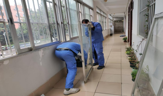 文学院二楼安装玻璃