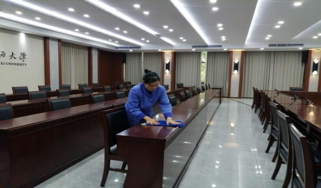 对君武馆、财务处、办公楼、大学生活动中心、保卫处等办公楼宇进行日常卫生保洁等服务工作。
