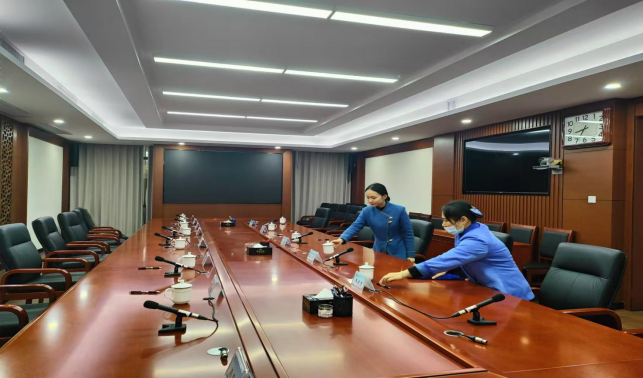 做好会场布置、会议前后保洁及会务各项服务共计39场,其中重要接待17场。