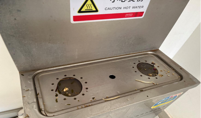 巡查发现净水机台面有茶渍
