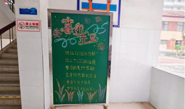一、在公共教学楼前利用小黑板开展“庆元旦”黑板报宣传。