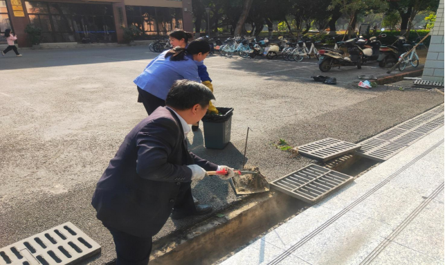 农学院楼宇天台排水设施清理