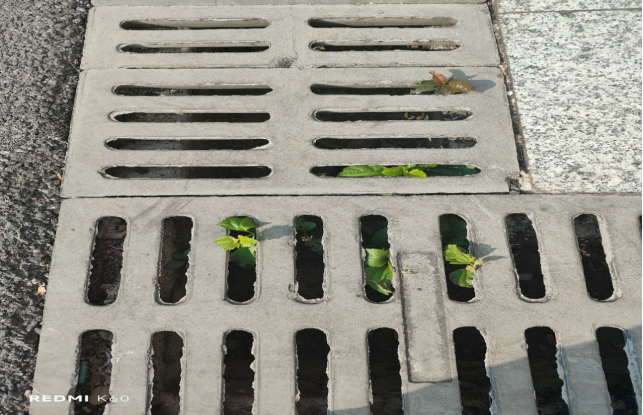 巡查发现楼宇外围排水设施有杂草