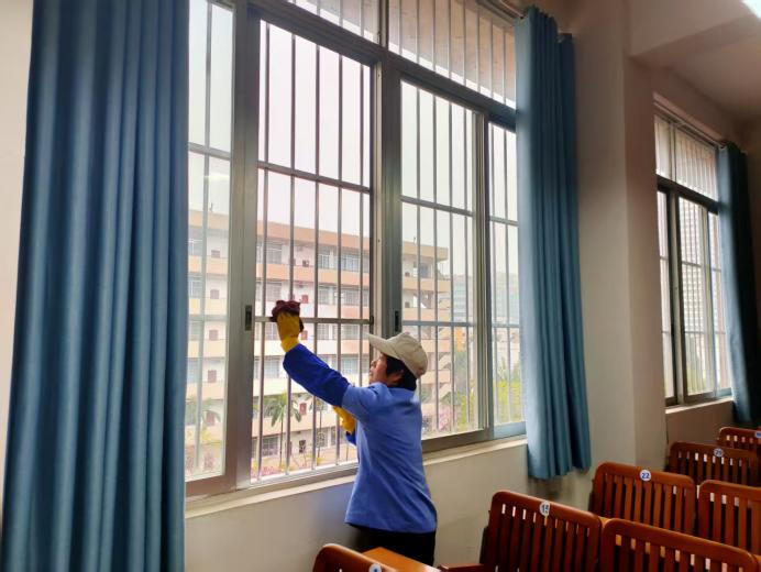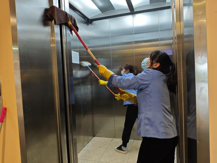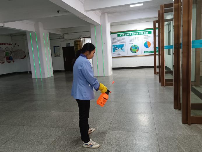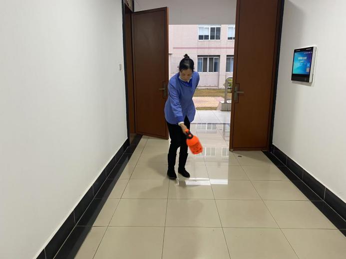 对公共教学楼宇的楼梯、走廊、门把手、课桌椅、电脑键盘、鼠标、水龙头、楼梯扶手、电梯间及按钮等高频接触表面进行重点杀菌消毒529次。