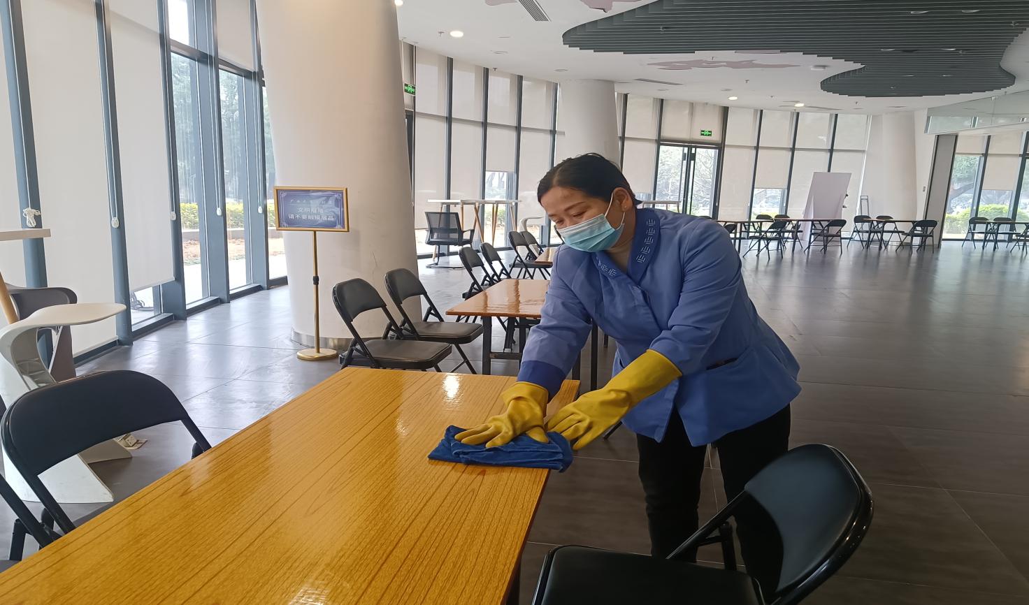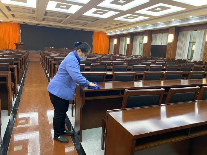 做好会场布置、会议前后保洁及会务各项服务共计38场,其中重要接待17场。