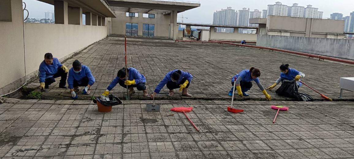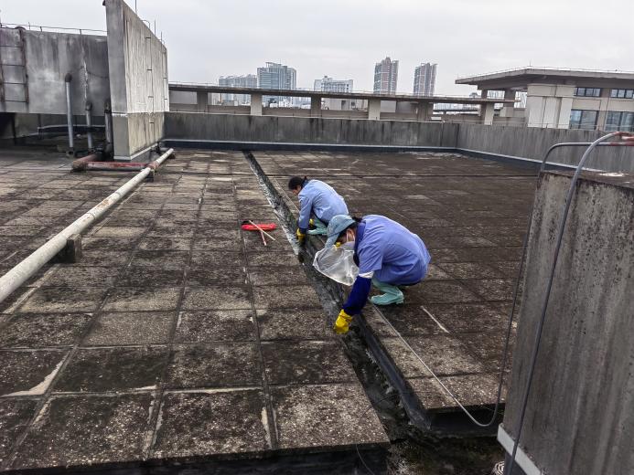 环境学院楼宇天台排水设施清理
