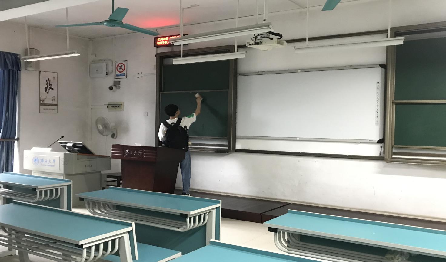 对语言中心、二教、三教、六教、十教、十一教、十五教、十六教和研究生院教室等教学楼宇进行日常卫生保洁服务工作,本周清理公共楼宇外围排水设施50次,清理公共楼宇天台排水设施43处。
