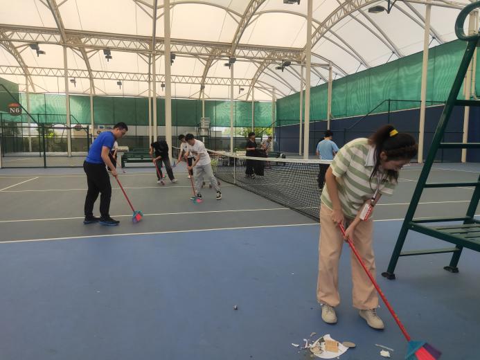 大学生在网球中心开展劳动教育实践课