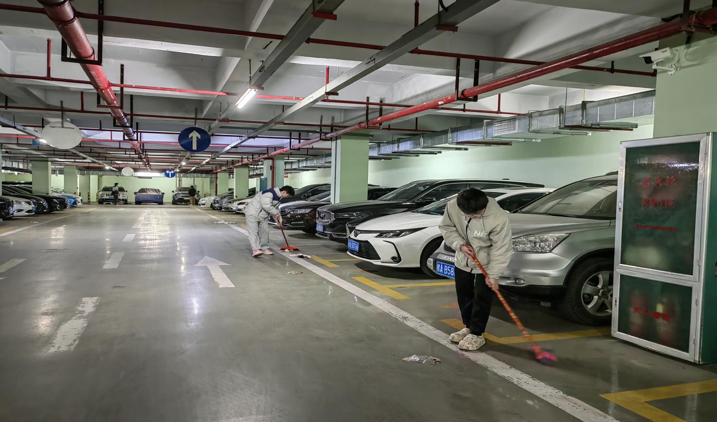 大学生在南大门地下停车场开展劳动教育实践课