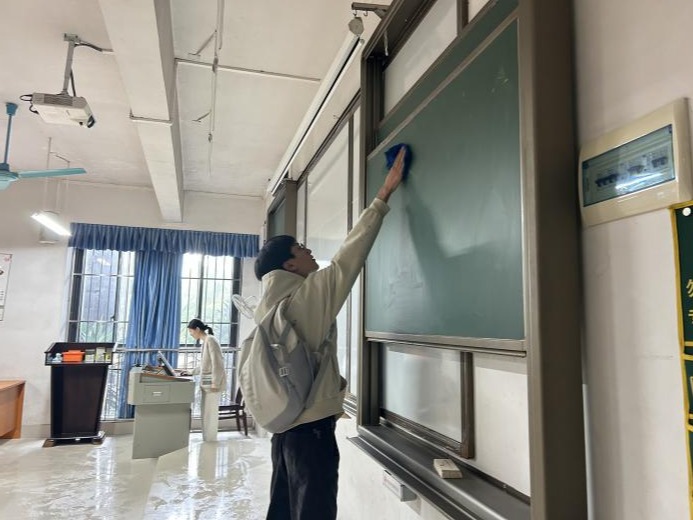 大学生在公共教学楼宇开展劳动教育实践课(图二)