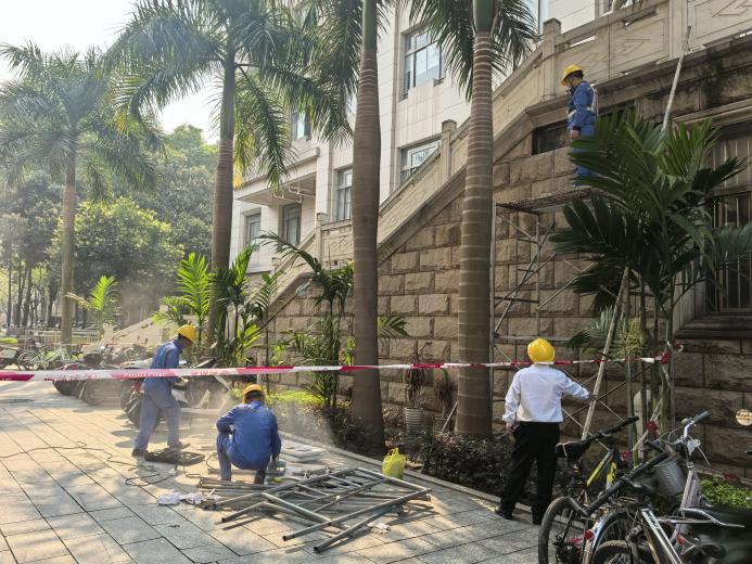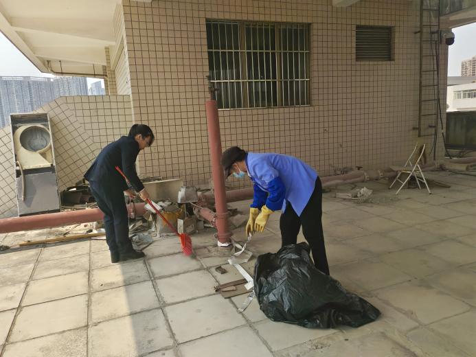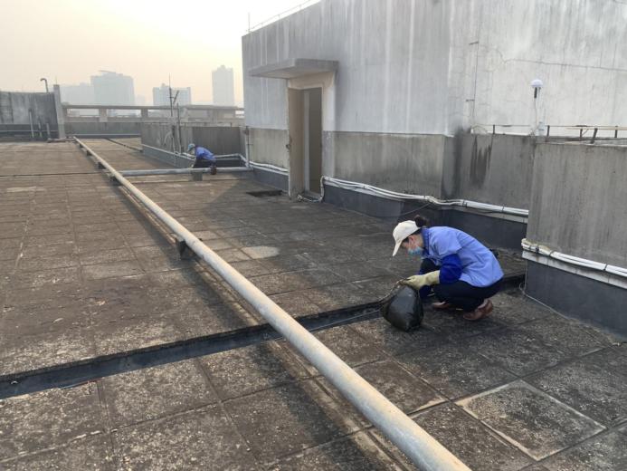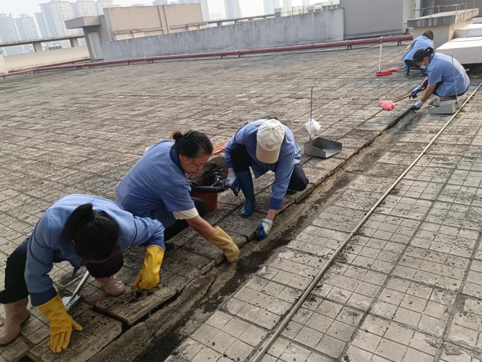 甘蔗生物育种研究中心楼宇天台排水设施清理