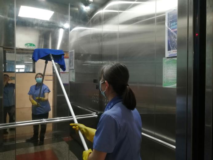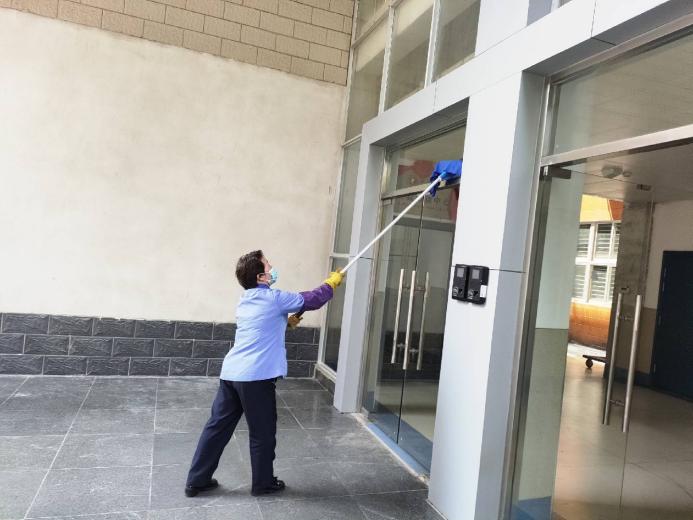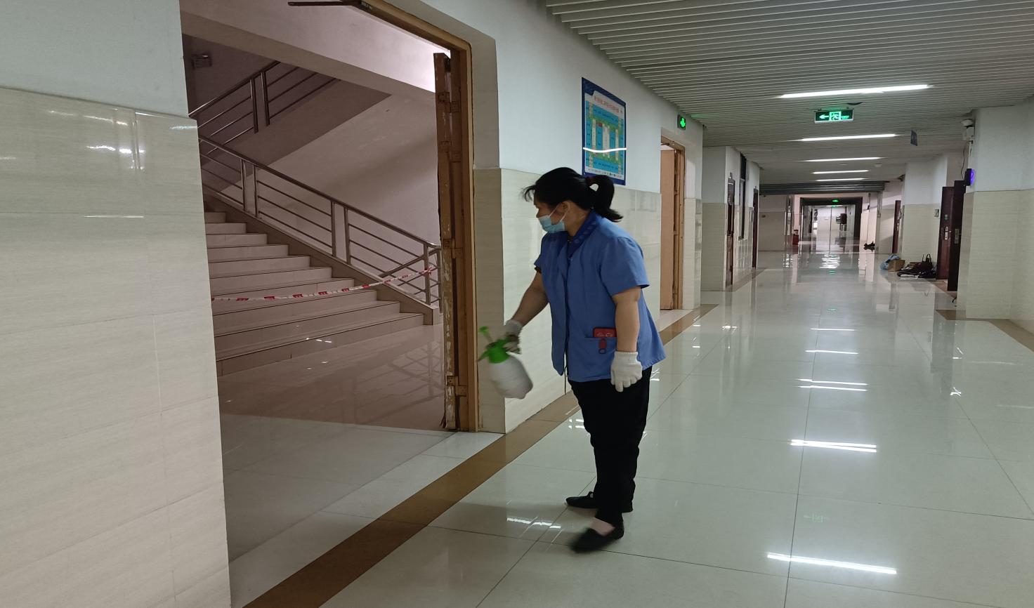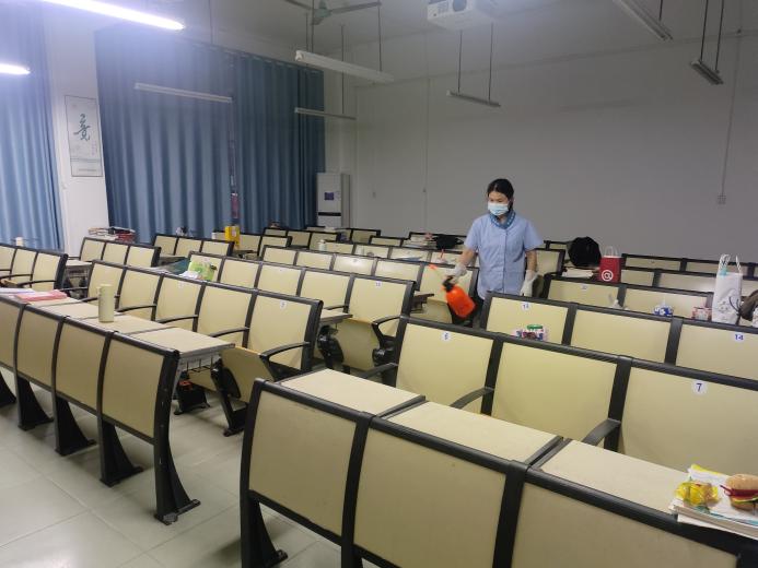 对公共教学楼宇的楼梯、走廊、门把手、课桌椅、电脑键盘、鼠标、水龙头、楼梯扶手、电梯间及按钮等高频接触表面进行重点杀菌消毒540次。