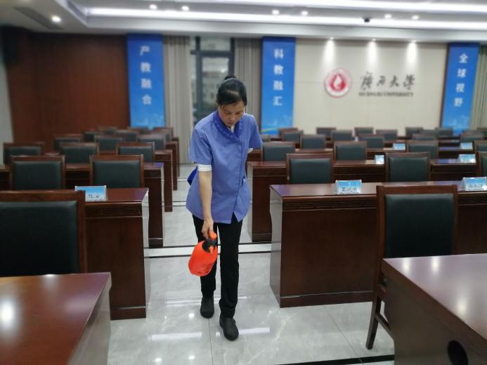 对外国语学院、中国-东盟经济学院、计算机学院、环境学院、甘蔗生物育种研究中心等26个学院进行日常卫生保洁工作。