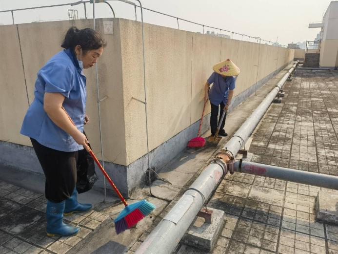 对语言中心、二教、三教、六教、十教、十一教、十五教、十六教和研究生院教室等教学楼宇进行日常卫生保洁服务工作,本周清理公共楼宇外围排水设施45次,清理公共楼宇天台排水设施44处。