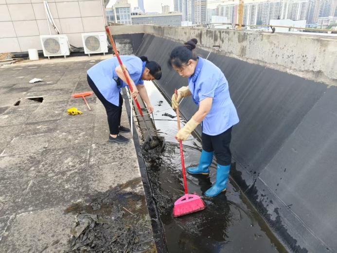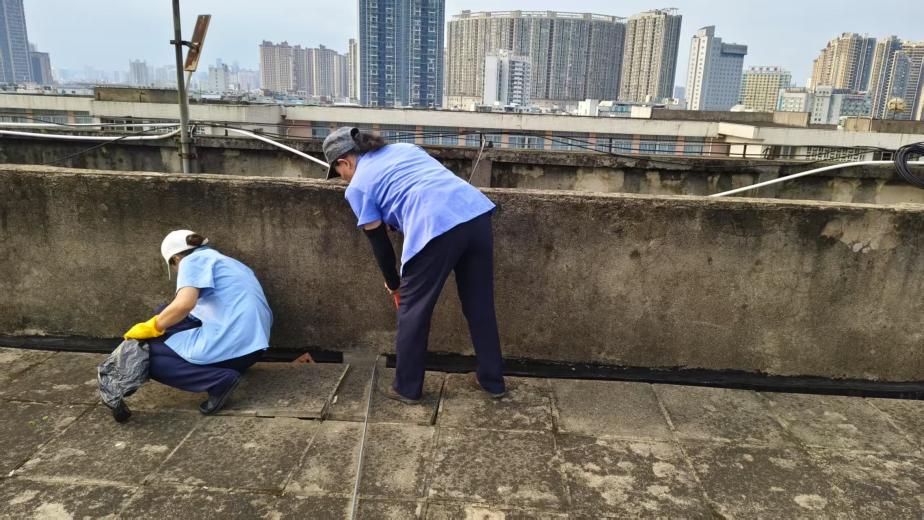 农学院楼宇天台排水设施清理