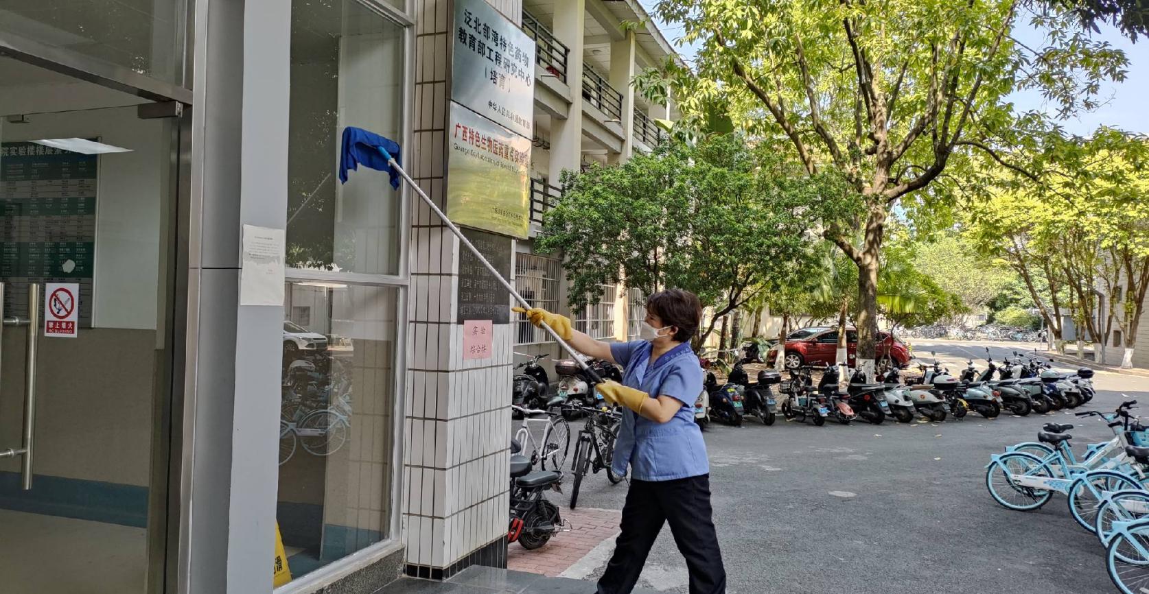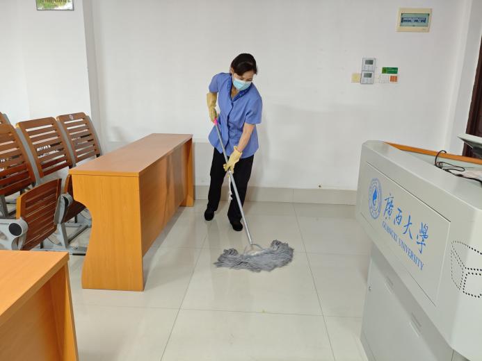 对中国-东盟经济学院、土木学院土木大平台、农学院、综合实验大楼等26个学院进行日常卫生保洁工作。