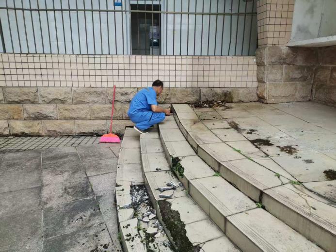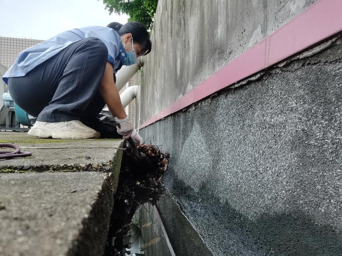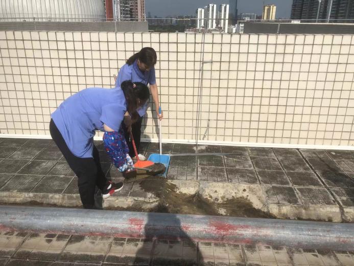 资环材学院楼宇天台排水设施清理