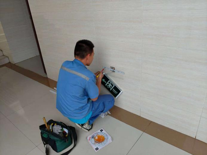 六教走廊处理脱落安全出口指示牌