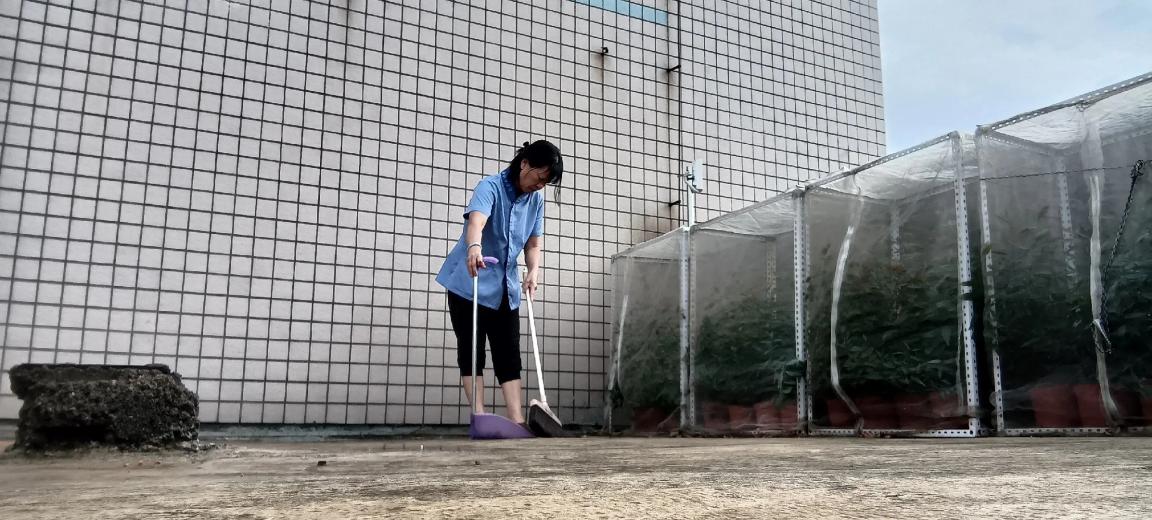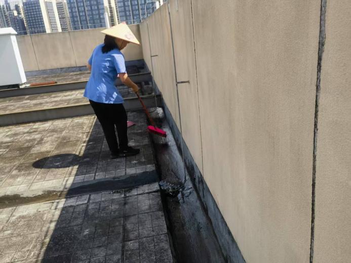 农学院楼宇天台排水设施清理
