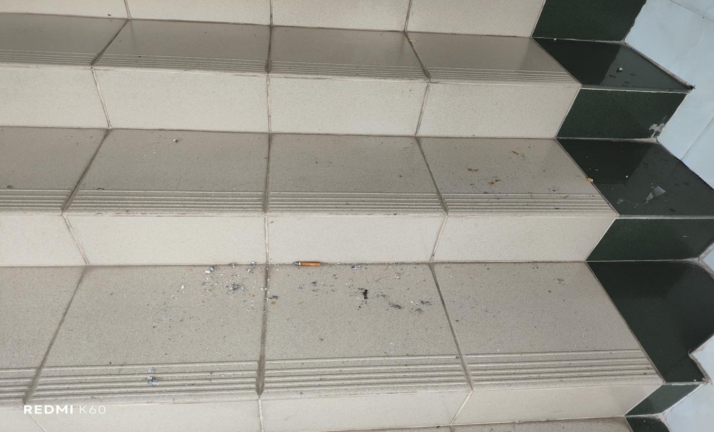 楼梯地面有烟头