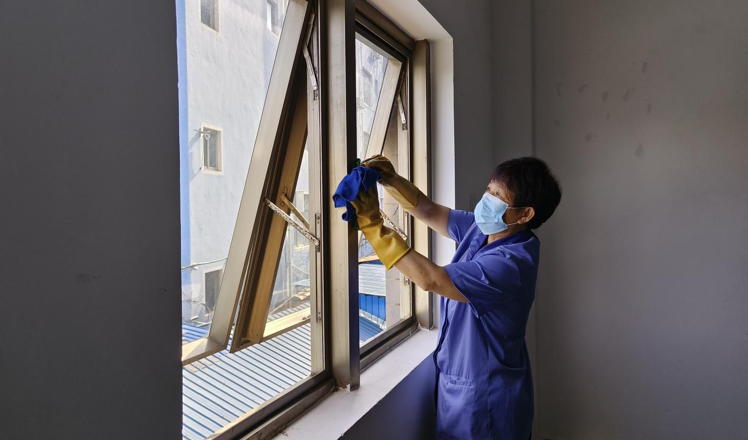 公共教学楼宇窗台清洁