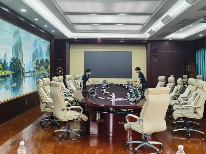 做好大礼堂、君武馆会场布置、会议前后保洁及会务各项服务保障共计32场,其中重要接待7场。