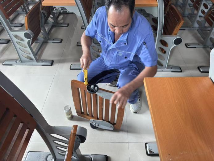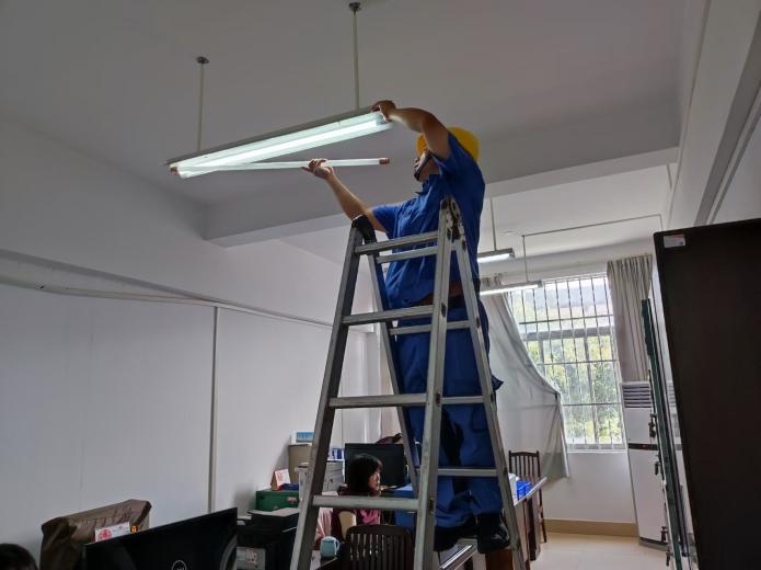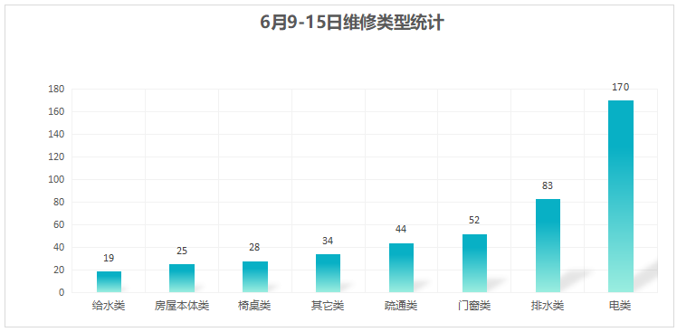对学校公共设施进行日常巡查、维护,对师生报修问题及时维修、抢修,确保公共设施设备正常使用。本周共接单455单,其中电类170单,给水类19单,门窗类52单,排水类83单,疏通类44单,房屋本体类25单,桌椅类28单,其他类34单,完成432单。