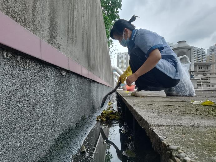 对语言中心、二教、三教、六教、十教、十一教、十五教、十六教和研究生院教室等教学楼宇进行日常卫生保洁服务工作,本周清理公共楼宇外围排水设施51次,清理公共楼宇天台排水设施43处。