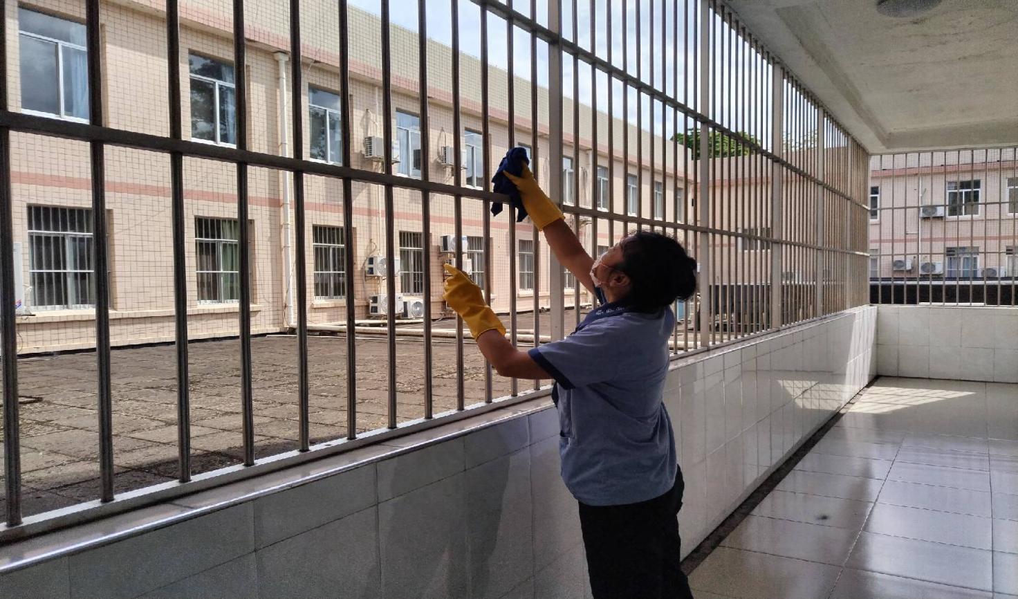 体育场馆走廊窗台清洁