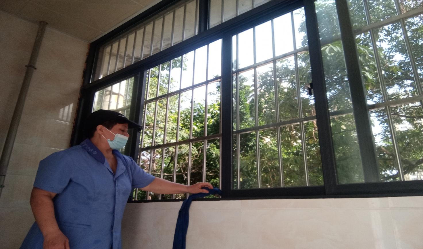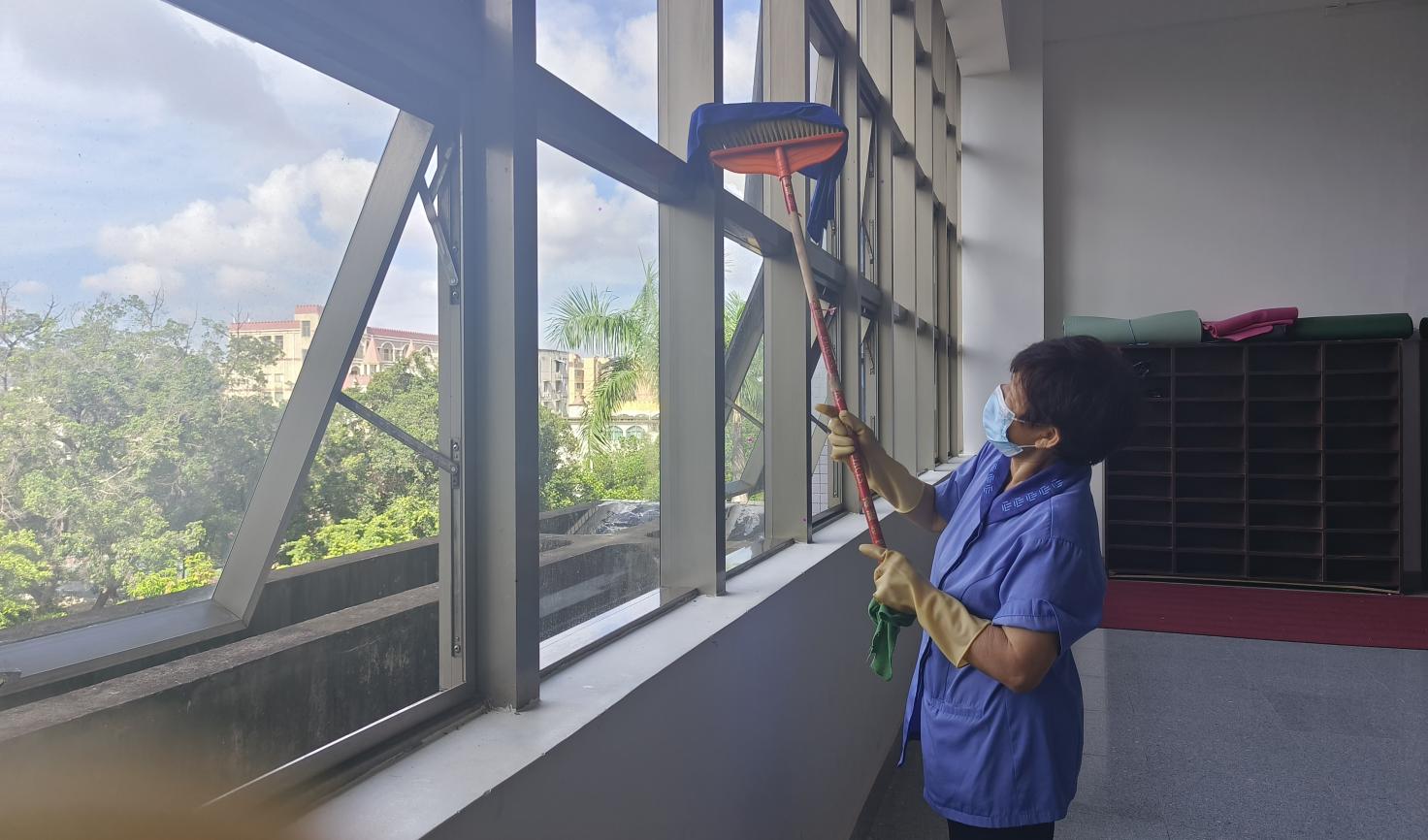 学院楼宇走廊窗台清洁