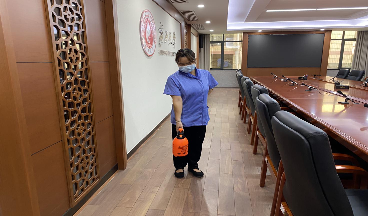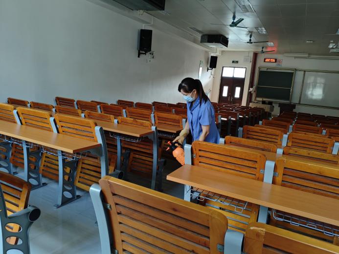 对公共教学楼宇的楼梯、走廊、门把手、课桌椅、电脑键盘、鼠标、水龙头、楼梯扶手、电梯间及按钮等高频接触表面进行重点杀菌消毒503次。