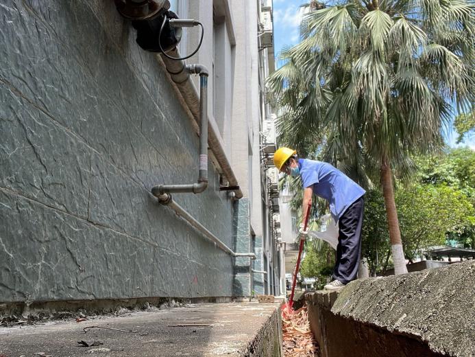 环境学院楼宇外围排水设施清理