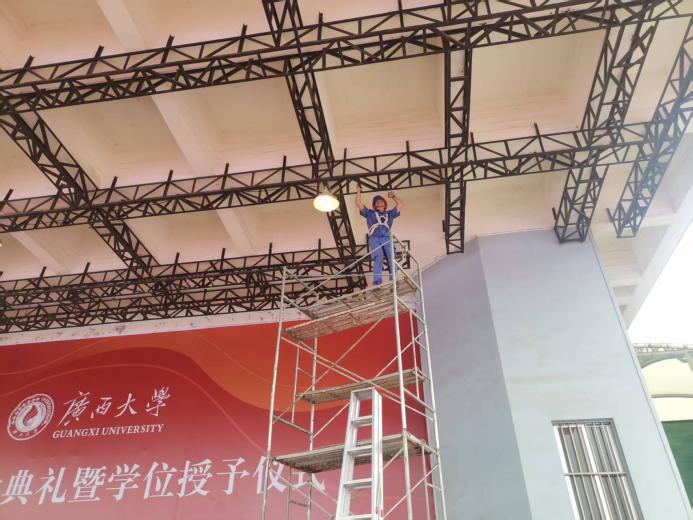 毕业典礼会场拆除天花板架子上铁线