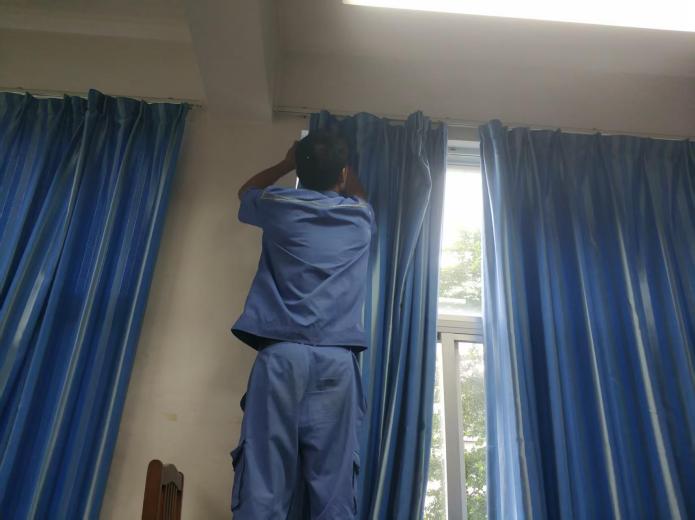 十教B座405教室悬挂窗帘