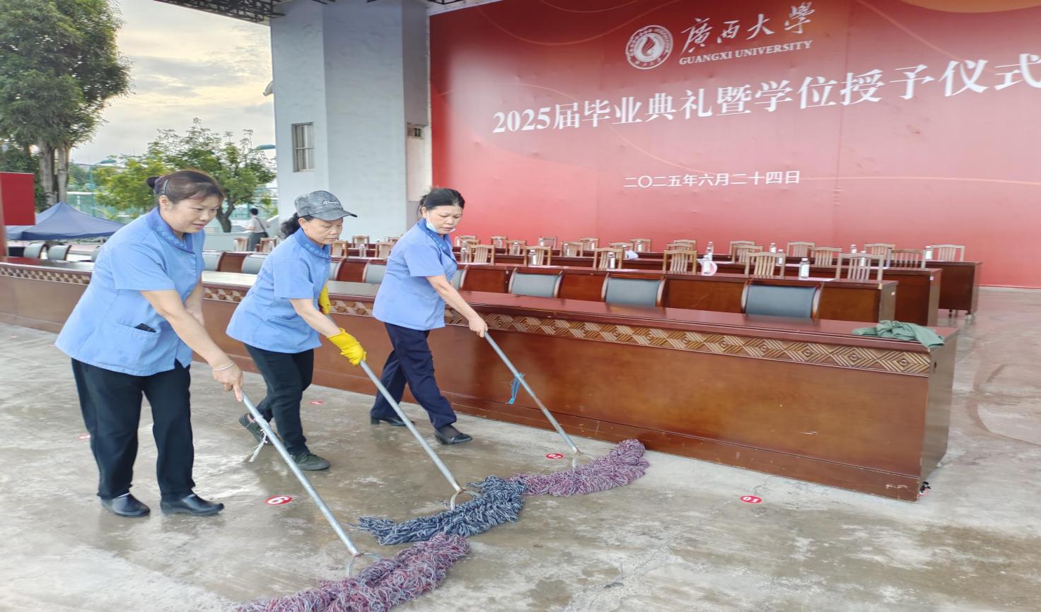 一、毕业典礼现场桌椅布置和保洁保障工作。