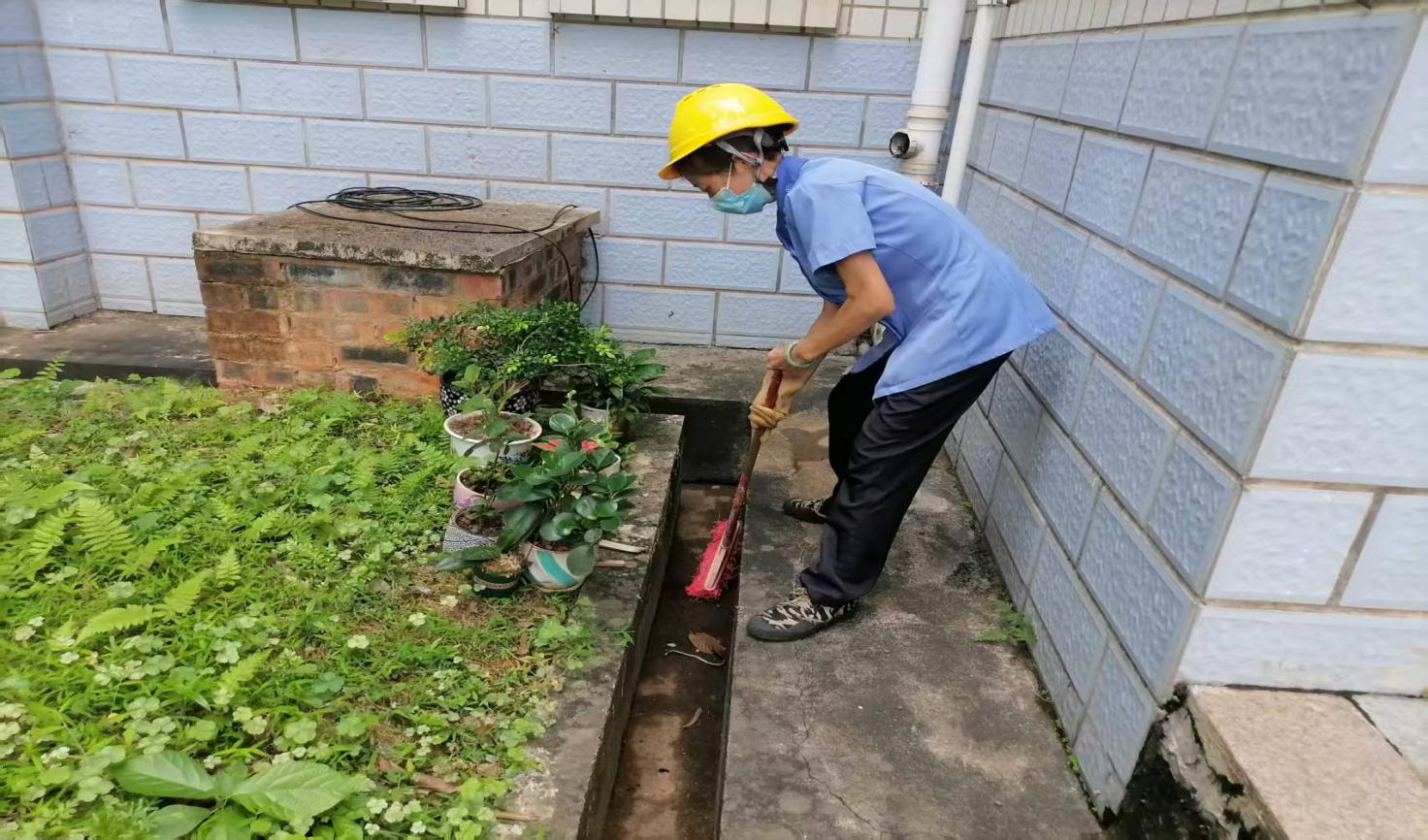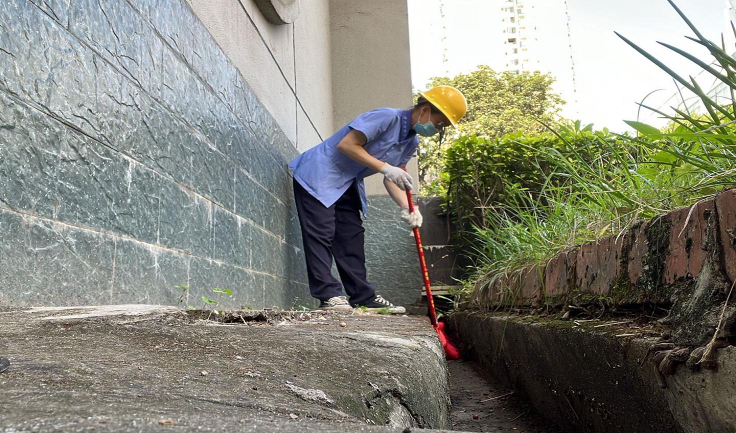 新东园办公楼楼宇外围排水设施清洁